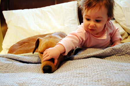 Leta says that every time she sees Chuck, and then she proceeds to torture him. I set her at the top of the bed so that I could pull up the covers, and Chuck was originally facing away from her. When I returned from grabbing the camera he had turned to face her almost as if he was resigned to his fate.