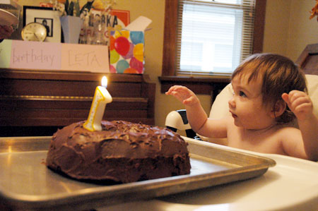 Even though her bithday isn’t until Thursday, we had to arrange things to accommodate the relatives, you know. It was a blast. Wait until you see what I smeared on her head.