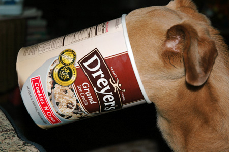 Ice cream mask Heather B. Armstrong | October 28, 2005 No animal was harmed in the process of this experiment. In fact, when I took the carton off his face because I thought he couldn’t breathe he whined to have it put back on. Kinky little bastard.