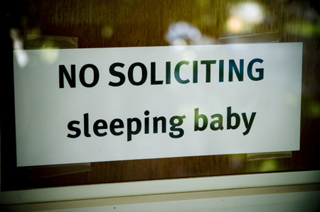 For several months we had a few signs taped to the door that read NO SOLICITING and DO NOT DISTURB. And they worked, the sales people stopped knocking on the door, but the tape eventually peeled and fell off. Since then we have just stopped answering the door if we don’t recognize the person on the other side. In the off chance that I accidentally open the door without checking first, Jon gave me a script to memorize to make things easier: “Hi. I’m sure you are a nice person, which is why you should get off my porch before my husband comes home and scars your face with a ball point pen.”