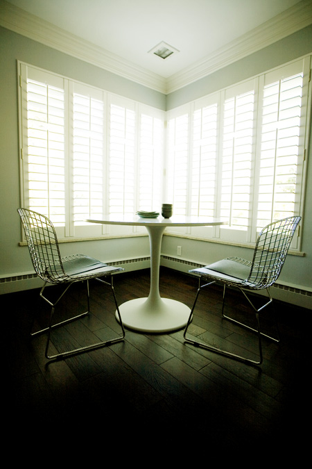 Corner window in the living room with new Bertoia chairs