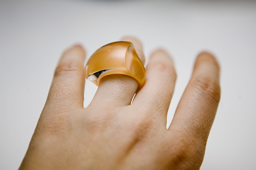Jon and I have never owned traditional wedding rings for various reasons, some involving money and the fact that I don’t like to wear jewelry unless I’m dressing up for a specific occasion. Like say, to impress my mother. Or maybe on that official trip to Target. So I buy “wedding rings” all the time, including this lovely, oversized peach-colored ring that I bought for $3.99 at Forever 21. It goes with both my gold and silver earrings, and gives me something to fidget with when my father asks Jon how he feels about gay marriage.