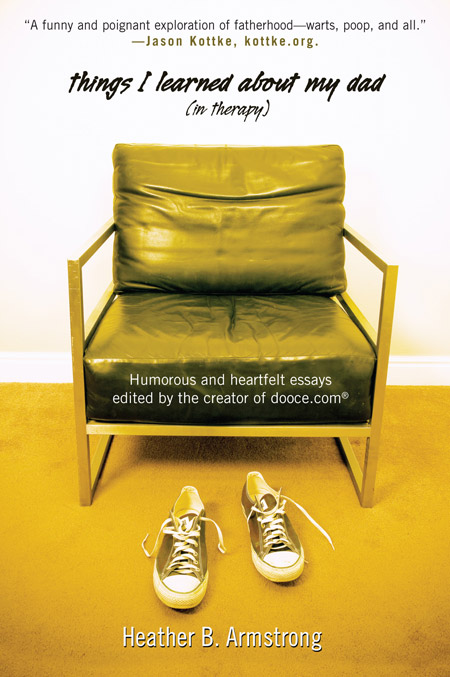 It’s a collection of essays about fatherhood written by me and some of my favorite online writers including Alice from finslippy, Eden from Fussy, Doug from Laid-Off Dad, and Dutch from Sweet Juniper, plus many, many more. Jon and I got to photograph and design the cover, although many hands had to touch it and approve various aspects of it, so the original was a little more finessed than what ended up as the final design. Still, we’re proud and I’m so happy to be out from under that deadline. WOO THE EFFING HOO.
