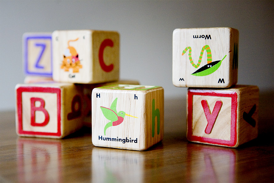 We gave these to Leta for Christmas a couple of years ago, and I thought we’d packed them up into a box in the attic but I found them on her floor yesterday where she had been stacking them into short words. We found them at a locally-owned toy store, and I did a search for them online but they seem to be out of stock everywhere. I love the illustrations that accompany the letters, and I can imagine it might be cute to spell out words with these and take photos to hang up as art. And I might just do that. I’m even thinking about it right now.