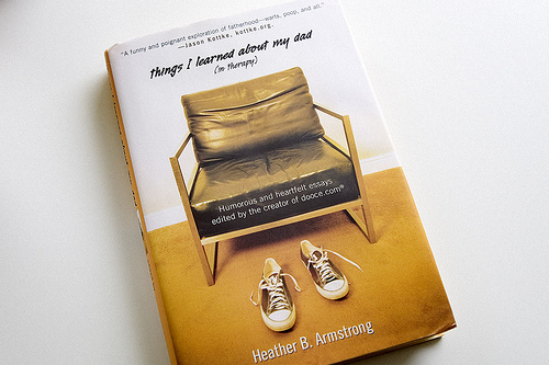 It’s called Things I Learned About My Dad (in therapy) and it’s a collection of essays about fatherhood from the perspective of fathers, wives, daughters and sons. I’ve written two of the 17 essays, one about my father and one about Jon. A few weeks ago I gave my father an advance copy of the book with the hope that he would read what I had written, but I didn’t say anything to him other than HERE IS MY HEART AND SOUL, DO WITH IT WHAT YOU WILL. I found out a week later that he had taken it home and used it to prop up a wobbly toilet. I like to think that I improved his life by those two inches.