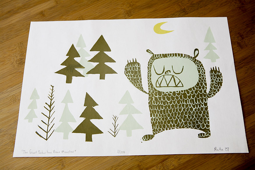 “The Giant Suburban Bear Monster” gocco print