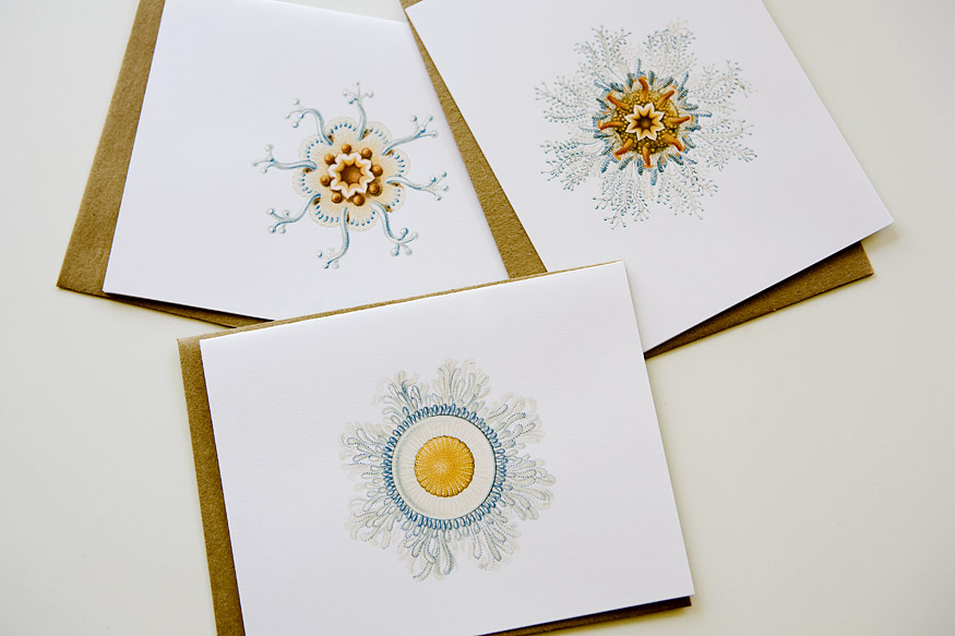 The owner of the OnePunkPosy Etsy shop, Elizabeth DeHart, sent me these notecards which could not fit in more perfectly with my aesthetic. I’ve been using a sea-themed clipart book to make some of my mastheads (I’ll feature that book here soon), and these designs look like something I’d use at the top of my website. I think I’m going to frame these cards and hang them in the bathroom, or send one every week to my mom with an OBAMA 08 sticker tucked inside.