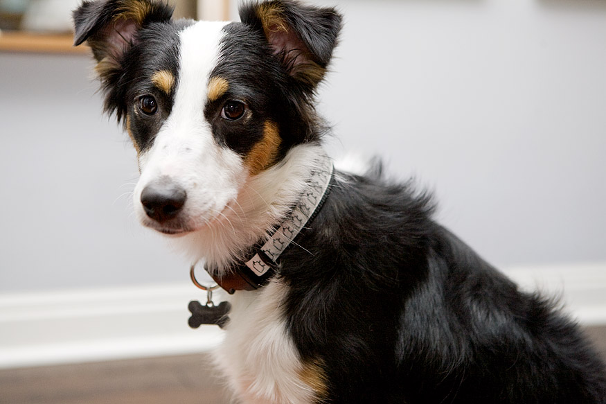 We finally got around to putting on the dogs’ new collars from The Mod Dog last night (Coco is seen here wearing the Skeep design, and Chuck is seen over here in the Hedgehog Festival design). This is the third or fourth collar we’ve had to get Coco since we adopted her in January, and I’m guessing all the wear and tear is caused by the constant wrestling she does with Chuck. Or maybe we haven’t taught her to treat her belongings with the respect they deserve, or so says her stuffed squirrel.