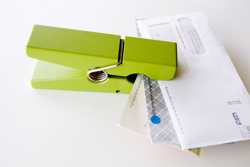 This clothespin was an anniversary present from Jon, something he found at a local Pottery Barn (and something I cannot find on their website). I have it sitting on my desk and use it to hold mail and other things that need to be addressed. This works better than a folder because the folder hides the work I have to do, whereas here’s this obnoxiously giant green clothespin going, THINGS WILL CONTINUE TO BE AWKWARD IF YOU INSIST ON IGNORING ME.