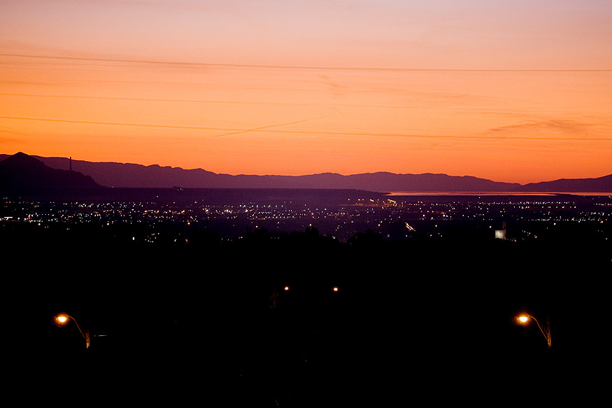 This was taken from the middle of our street, and you can see the tip of the Great Salt Lake there to the right. We’d be able to see the lake from inside our house if it weren’t for a bank of pine trees that line the perimeter of our yard, something we won’t ever complain about because of the shade our house gets during the hottest parts of the day. October is continuing to be one of the most spectacular months of the past year.