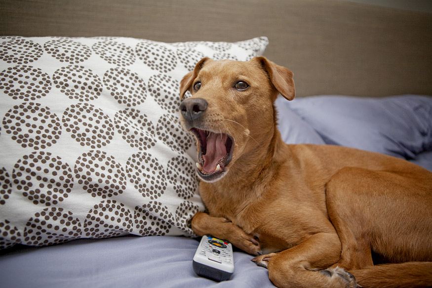 This photo was in no way staged, and instead of lying on an area of the bed unoccupied by a remote control, he said screw it, this is where I want to be. And when we walked in he was watching Cinemax.