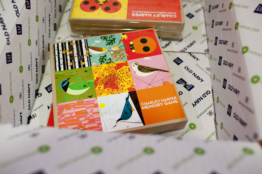 I cannot count the number of people who have written to inform me of this (thanks to all of you), but there is a collection of Charley Harper children’s games, books, and t-shirts for sale right now at Old Navy, a line introduced by Todd Oldham who was named the company’s new design creative director last year. I’m having a hard time deciding whether to wrap this up and give it to Leta for Christmas or to keep it pristine like it is and set it on my desk so that I can look at it longingly while I work. I love that he brought Harper’s illustrations to Old Navy, and I can’t wait to see what other ideas play out.