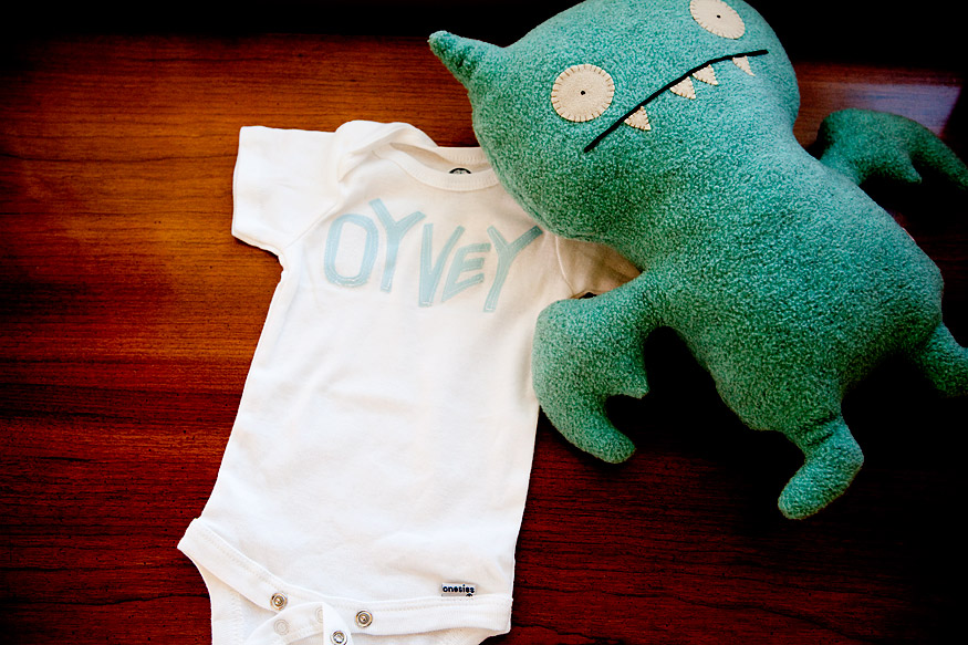 Natalie, the owner of the Onesie-Twosie Etsy shop, sent over this custom onesie for the baby, and my first thought was, oh my god, she’s going to be that small? Natalie’s shop is full of custom onesies and toddler tees that would make great baby shower gifts, although I doubt the kid will know to spare this one from the constant stream of projectile poop that is so common with persons of that age. Which reminds me, our lives will once again be consumed with the color and consistency of someone else’s bowel movements. Very important work, parenthood.