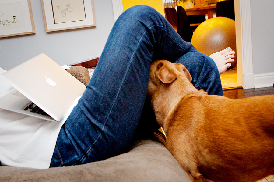 Last night we were watching The Funny Show, and once again our laughter caused Chuck distressing anxiety, this time manifesting itself in his desire to hide his face. The nearest place was the space between Jon’s crossed legs. Now neither one of them can run for office because who is going to believe that explanation?