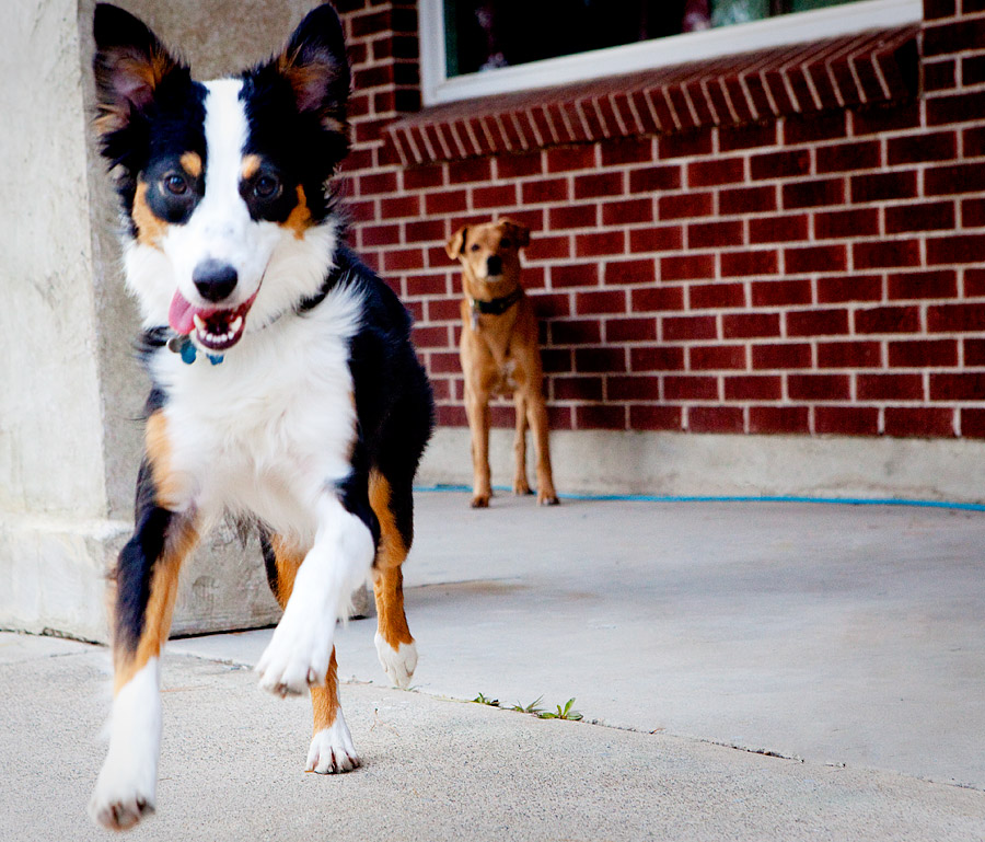 When I was downloading the photos that Jon had taken of the dogs outside in the backyard there was this series of about 50 shots where Coco runs between him and Chuck, back and forth, as crazy as if her veins were pulsing with lighter fluid. And Chuck just stood there like this the whole time staring at Jon, like this is totally ridiculous, do you see what you did to our lives by bringing her home?