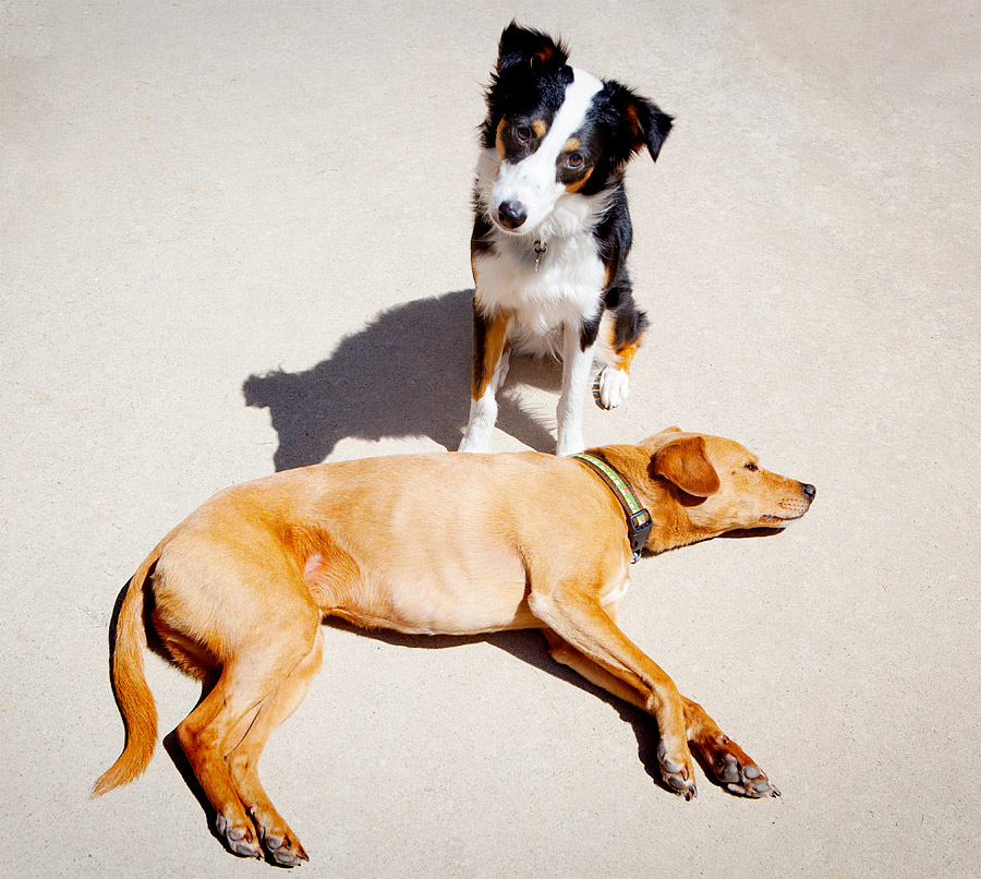 It’s still a little too early in the season to roast himself to death, but that’s not going to stop Chuck from trying. In fact, he lingers near the back door all day long now that the weather has warmed up a bit in hopes that we’ll let him out, so that he can fall over on the concrete patio exactly like this. I don’t mind at all because it gives Coco something other than my foot to worry about.
