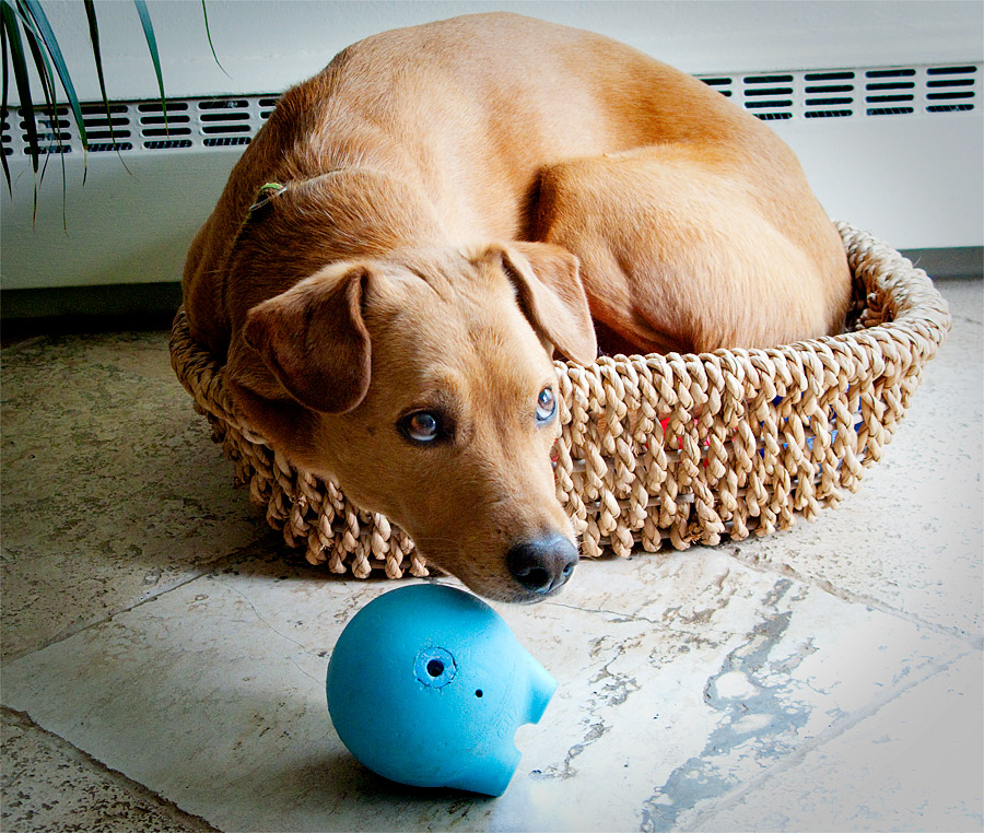 What he heard, apparently: “Climb into that basket of dog toys that is too small to hold your 35-pound body. And then look really cute.”
