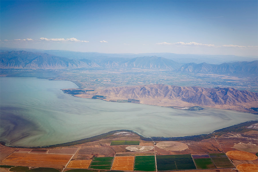 I believe this is the southern end of one very dirty Utah Lake, made so because of the crap Geneva Steel used to dump into it (don’t quote me on that, it’s a bit of a controversial topic in these parts). It’s hard to ignore the discoloration of the water from the perspective of an airplane, however. Although that discoloration is also surreally beautiful.