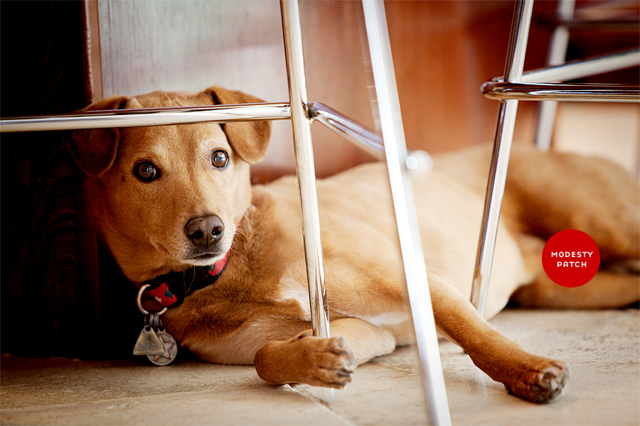 He always matches his collar with his modesty patch.