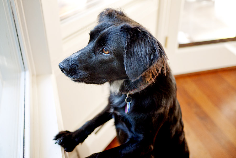 This weekend my friend Carol and her family were visiting, and we got to spend three whole days with Basie. Except, she wasn’t as interested in us as she was with the maniacal squirrels in the backyard. This is where she parked herself and remained for hours on end. Not a stereotype at all.