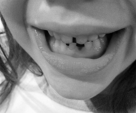 We waited to see if dinner would move things along, and twenty minutes after her usual bedtime we were all on the couch — me, Leta sitting on Jon’s lap, McKenzie there as our cheering squad. Leta winced and grimaced and my dinner danced in my throat as Jon feverishly twisted and pushed and pulled and coaxed. Finally, one last tug… BOOM! A tiny bottom front tooth sat in Jon’s hand. It was over! And Leta ran to the bathroom in disbelief. When I caught up with her she was out of breath, her mouth full of blood. Her breathing was heavy, as if she were on the verge of crying.