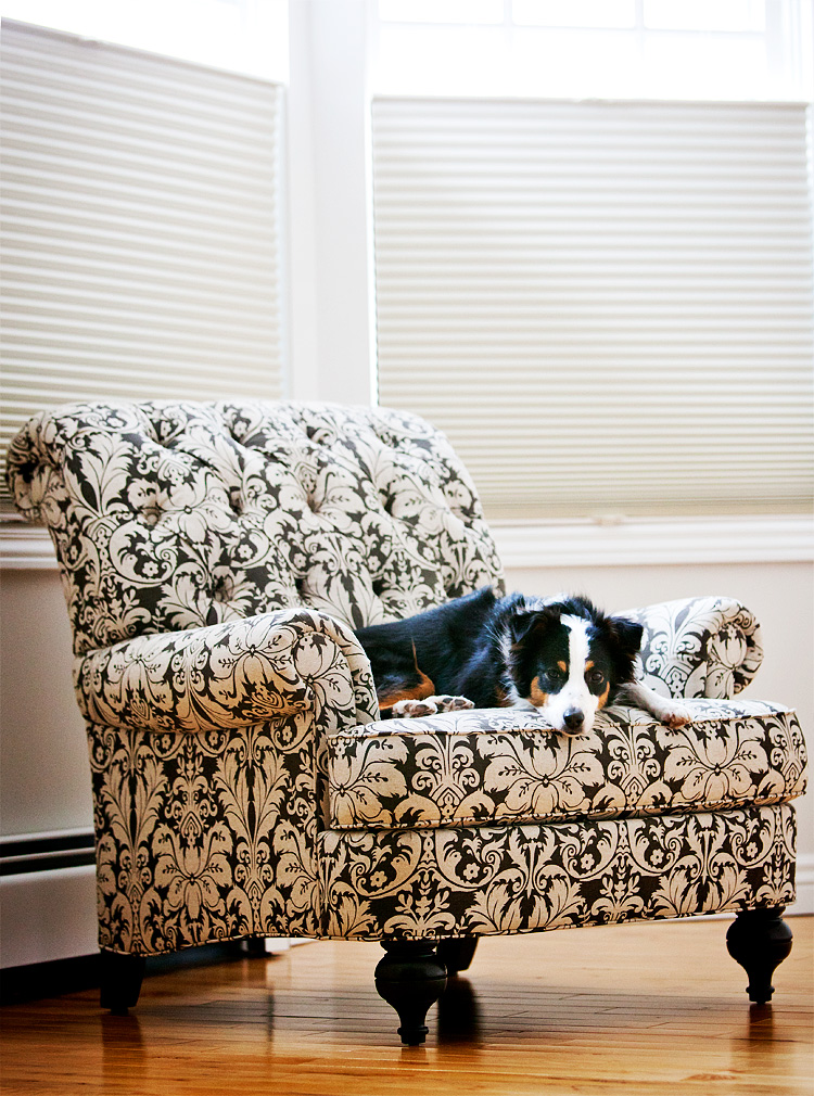 At the end of 2010 we attended a scratch and dent sale at Ethan Allen and found this chair for a total steal, and I knew when I saw it that I wanted to design our bedroom around it. So far, we have this chair and the black-out shades in the windows. That’s it. The rest of the room probably won’t come together for another year, but that’s okay, I’ll have a blast every step of the way. It also gives me an excuse to spend an inordinate amount of time reading my favorite design blogs for inspiration.