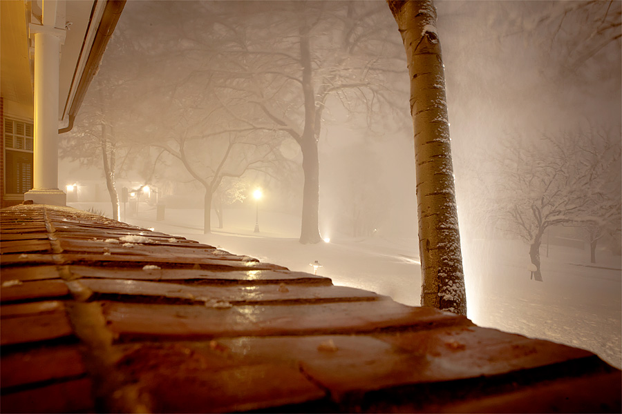 Wallop Heather B. Armstrong | March 8, 2011 Last night twelve inches of snow fell, and during the storm I had Jon show me how to take a photo so that everything is in focus. He took this one because I still have a lot to learn. Winter, I think I speak for many of us: get off our lawn.