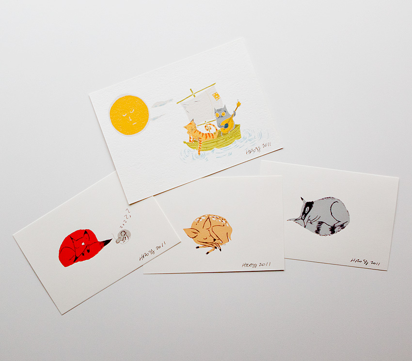 These are limited edition prints by Heather Ross that I plan to frame and hang in Marlo’s room. (Unfortunately they are sold out, but Heather has a line of fabrics at Purl Soho.) The only things in her room are her crib, a rug, and a rocker. That’s it. I’m waiting to jump into the design of her room until she transfers from the crib to a normal bed (you know, WHEN WE ALL DIE), so right now I’m in the collecting phase. I’ll get to point to these animals and say, “See? They are sleeping. Pretend you’re a raccoon. WAIT. FORGET I SAID THAT.”