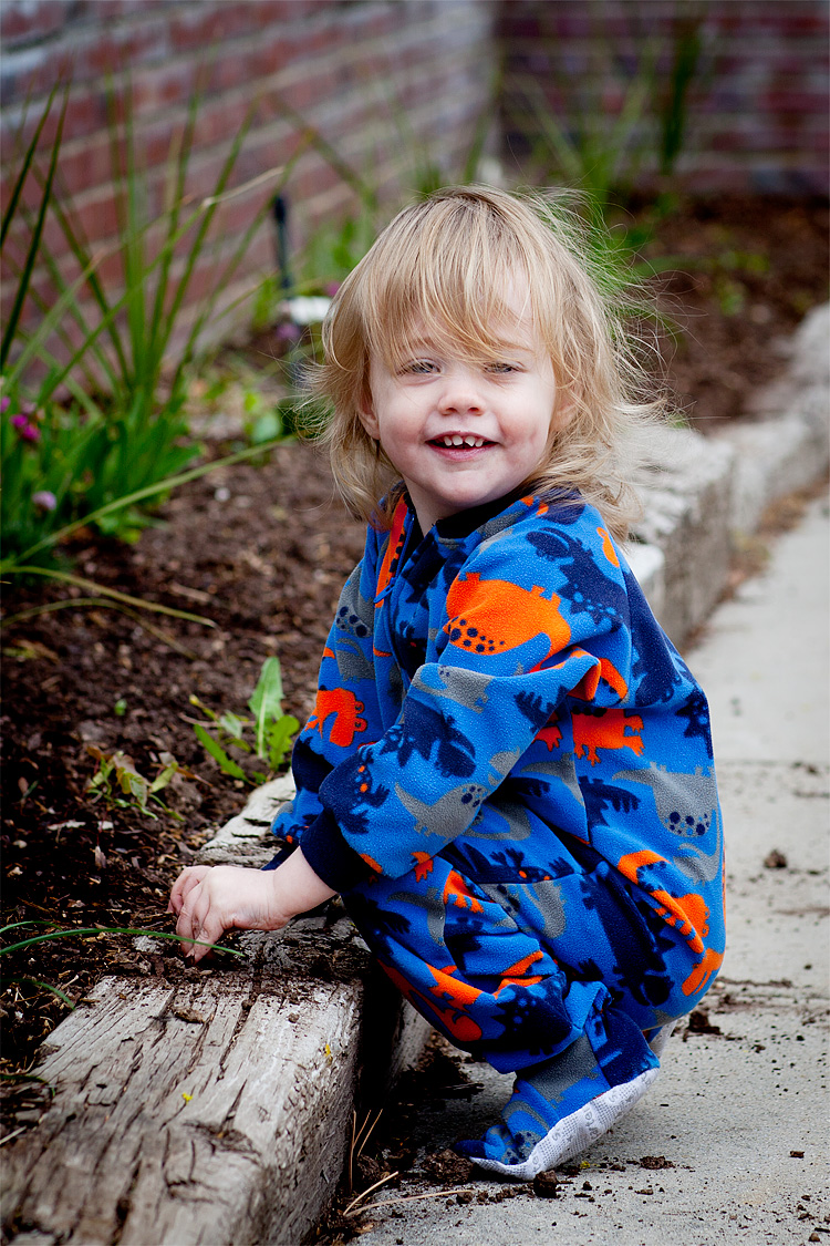 Our new gardener Heather B. Armstrong | May 9, 2011 Had to put this kid to work. On a Sunday. At noon. In her pajamas.