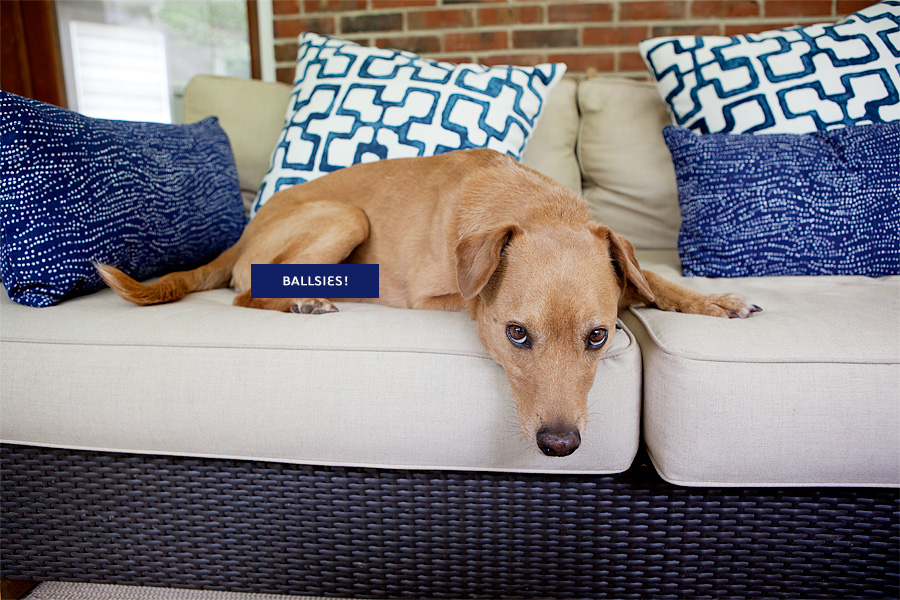 Respite Heather B. Armstrong | June 22, 2011 Isn’t he thoughtful to match his modesty patch to the pillows? Such a good boy.
