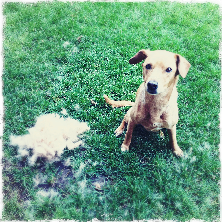 It’s the middle of summer, right? The dogs usually molt in spring when they lose their winter coats. It’s been so cold in Utah that Chuck’s fur got confused.