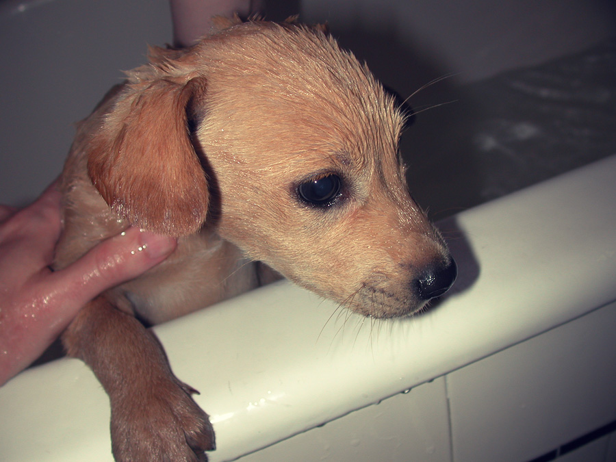 One of his first baths