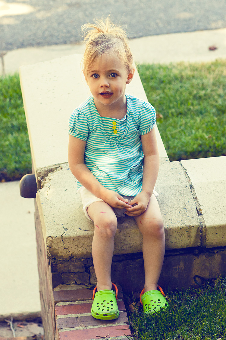 So unfortunate Heather B. Armstrong | July 26, 2011 That she has to mar her adorable little body with those things on her feet. Add that to the fact that she has marker all over her legs and we haven’t cleaned that up? CLASS.