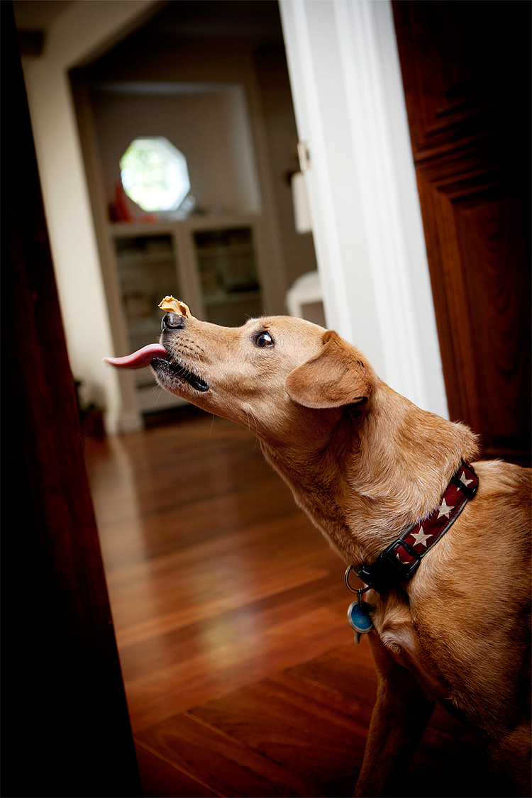 This is another perspective of Chuck’s fun with the peanut butter, and I think I like this one better. It looks almost religious. (Deligious!)