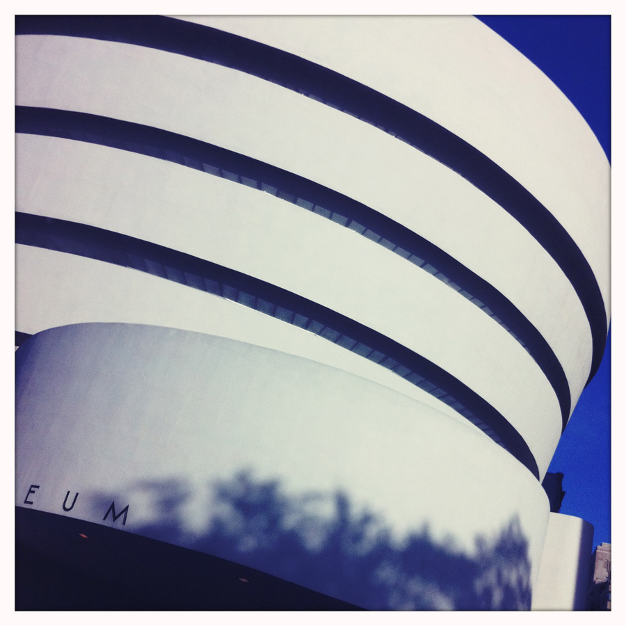 I’ve been to New York City how many times now? Twelve? Fifteen times? And I’ve never seen the Guggenheim Museum. We drove past it briefly on Tuesday morning and I barely had enough time to take this shot out of the window of the moving car. And it was as magnificent as I always thought it would be.