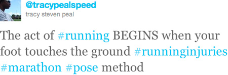 He told me to keep pulling my foot up, not out, and feel a sense of weightlessness as I moved forward. I should stay tall with my knees bent. I tried this on Saturday and ran 6.3 miles effortlessly. Easiest, most comfortable run yet. It took me a few strides to get a feel for it, but then it made so much sense that I accidentally started twirling, turning cartwheels, and farting confetti.