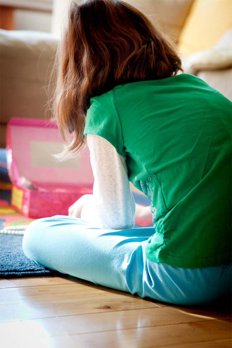 She’s slowly coming out of whatever it is that has gripped her since last Friday, but not enough to send her back to school. To keep herself busy she got out two sticky notes and wrote down a schedule for her day with a list of ten items. The first one: eat breakfast. Number ten: dinner. In between there are things like practicing piano, writing, and sorting through her jewelry box. No where on that list is watching television. Have I taught her nothing?