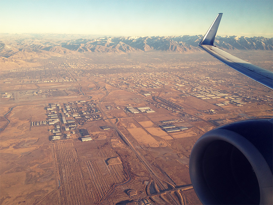 You can see downtown Salt Lake City toward the upper left part of the photo. Teeny tiny. Just below that is the airport. And just below that is the flight attendant standing next to me with her arms crossed ready to hit me over the head with my electronic device.