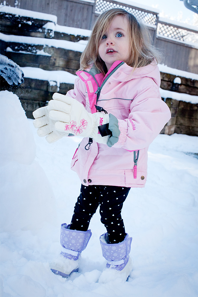 Leta handled being out in the snow for about six minutes. We had to drag this one inside because she had been out there so long her lips started turning blue. And my, aren’t her hands huge?