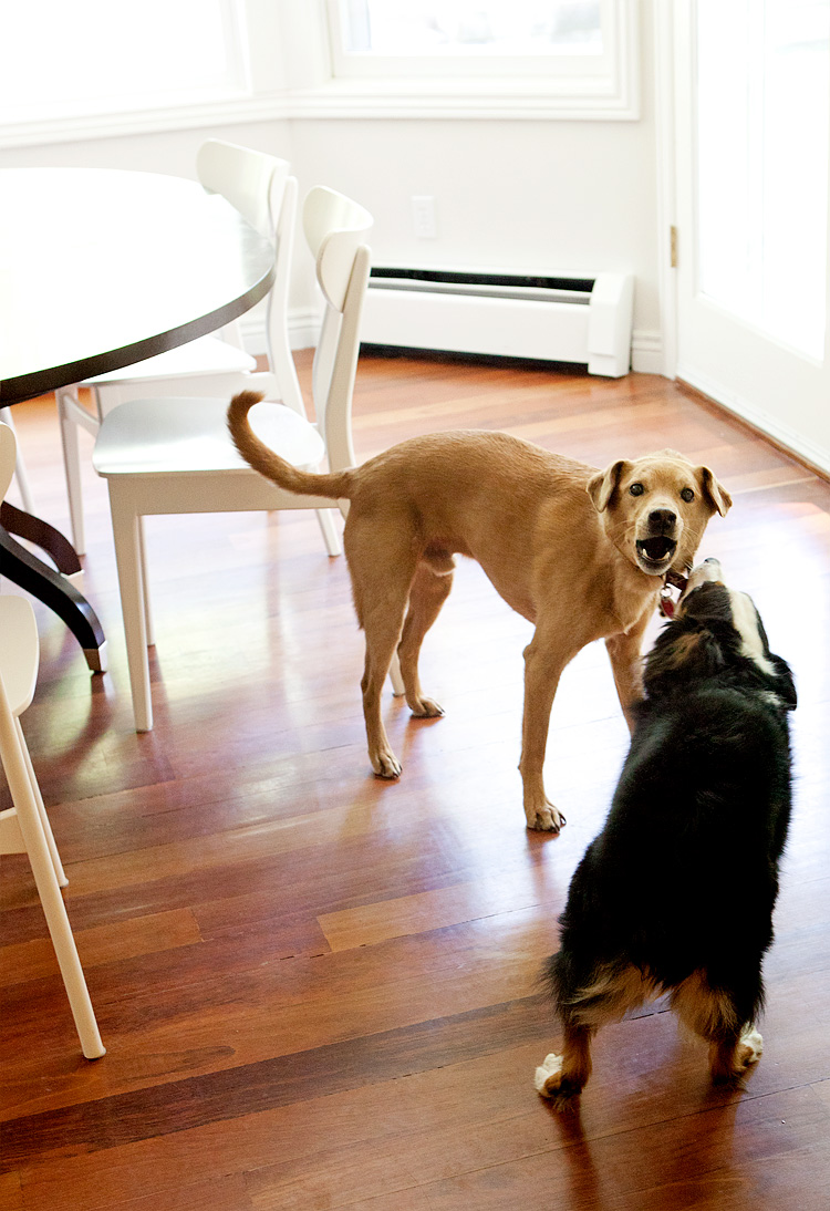 Indoor voices Heather B. Armstrong | April 30, 2012 Shhh! No growling inside, Chuck. However, I didn’t say anything about murder.