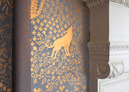 I was immediately inspired by the idea of meticulously painting an entire room in my own freehand style. I decided to create something that looked at first glance to be wallpaper, but on closer inspection became apparent to be a non-repeating painted design.