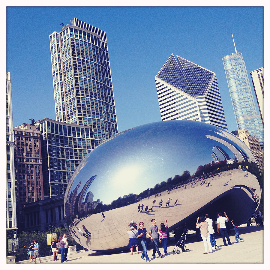 I had a few minutes while in Chicago yesterday to run up and take a few shots of Cloud Gate, aka The Bean, a sculpture in the middle of Millennium Park that reflects and distorts the city’s skyline. Beans, beans, good for your heart! Even though they aren’t on the Paleo diet!