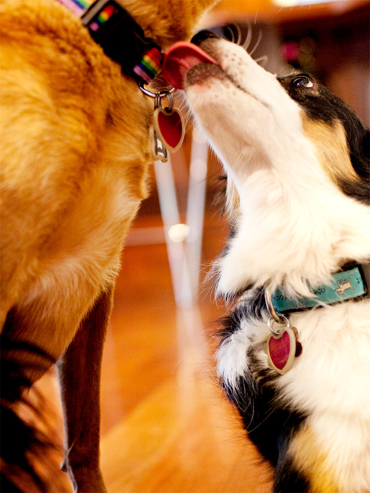 Deference Heather B. Armstrong | October 15, 2012 This dog needs to make up its mind between being totally deplorable and melting my heart. When she shows this kind of affection toward Chuck, I’m like, you manipulative bitch. I love you so much.