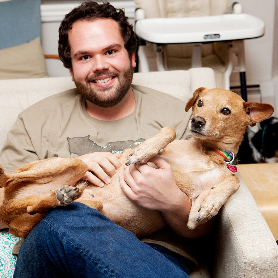 Early yesterday afternoon Chuck started to act really weird, like he had swallowed a whole bunch of tampon applicators and was in search of a place to spray his puke. Luckily this never happened, but I couldn’t figure out why he was pacing the house and staring holes in the wall. Call me a crazy dog person, but maybe he could tell that I was anticipating GEORGE!’s visit. And he was thinking, he’s coming back to sneak me chicken underneath the table!