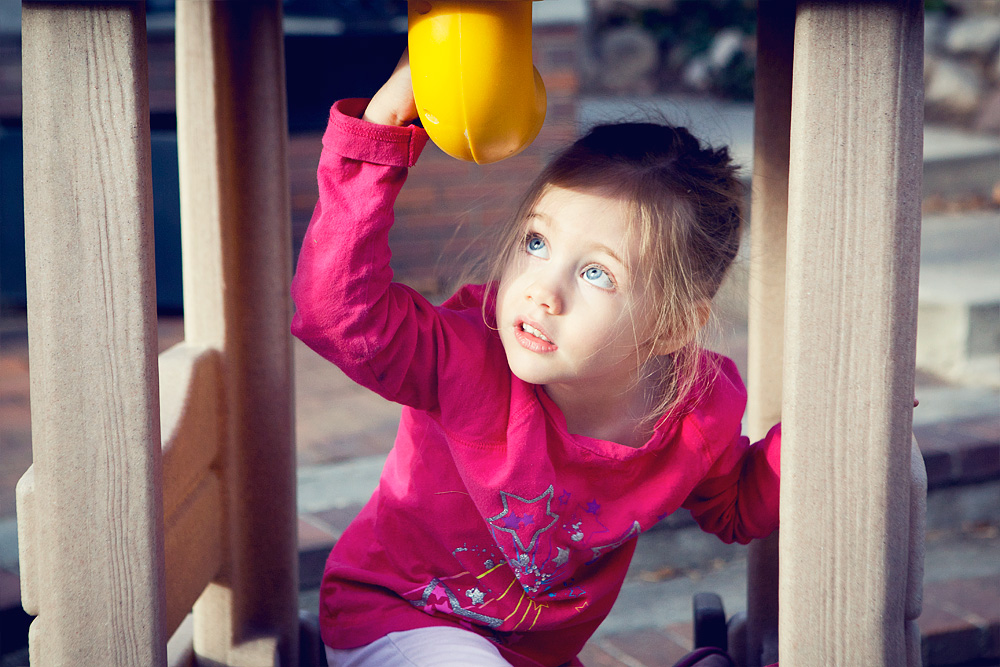 Last night the weather was dazzling, and before we piled in the car to head to Leta’s piano lesson Marlo and I hung out in the new backyard for a bit. She hasn’t seen these toys since what? October? They’ve been covered in three feet of snow, and the time away from them made them seem brand new.