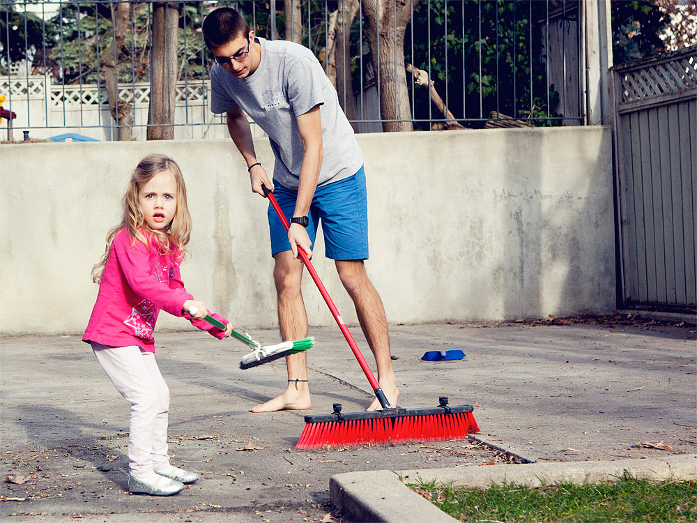 There’s a small concrete courtyard in the backyard where the kids can ride around on scooters or play tag or smoke weed whatever it is that kids these days do. Sure, it’ll have to be swept from time to time, but that’s a lot less yard to mow, too.