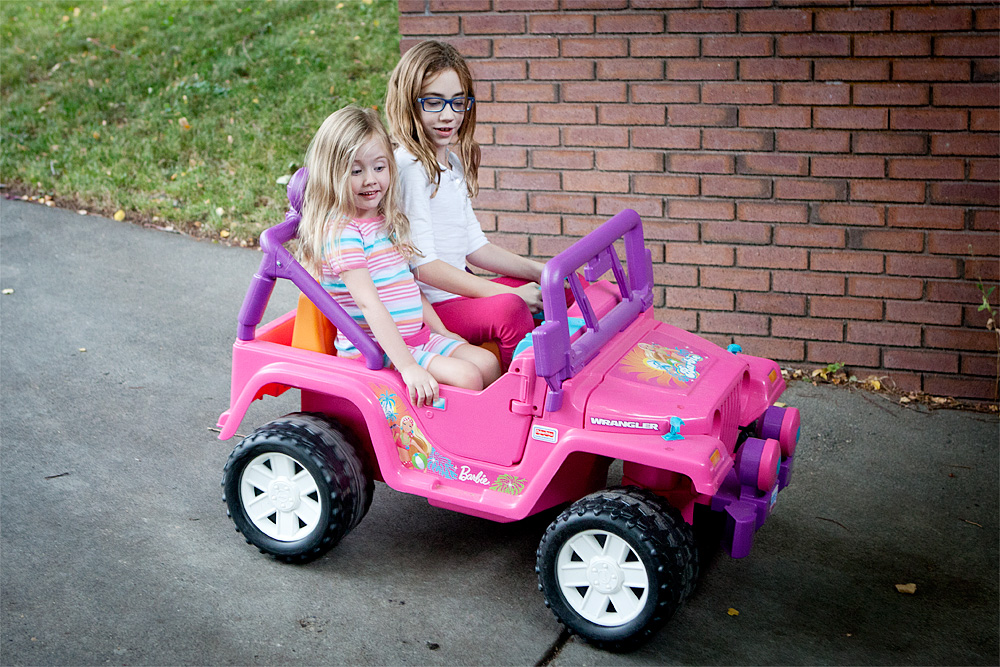 The girls got this for Christmas last year, and they’ve taken it for a spin several times here in the warmer weather. Lord, you parents with kids old enough to drive cars, I want to give you a giant hug. Because I had four heart attacks as Leta attempted to back up and every single time she ended up hitting a tree, a lamp post, or spinning out into the middle of the street.