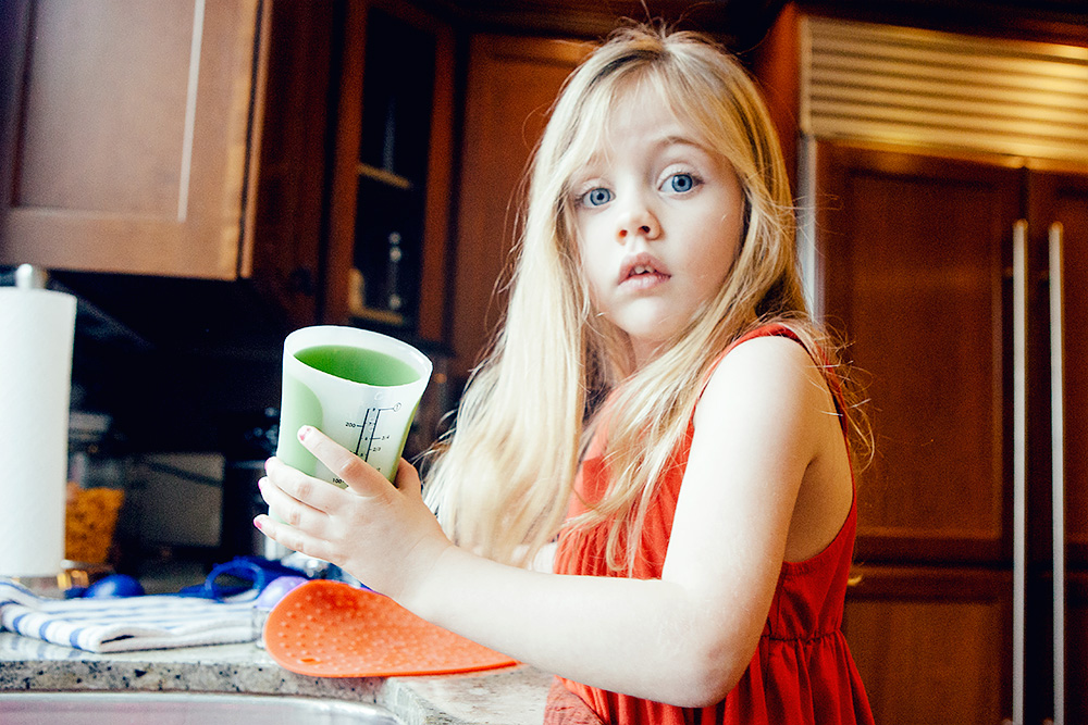 Yesterday afternoon Marlo asked if she could play with her Barbies in “the water” so I told her to pull a stool up to the sink. From Barbies she graduated to plastic cups to my entire utensil drawer. Water was everywhere, all over the counters and floor. One very amazing thing to come from that cleanse I did is that I didn’t give a rat’s ass. I’d have her help me wipe it all up when she was done which wasn’t for another two hours. This kid and water. Someone could have come up behind her and set off a car alarm and she wouldn’t have flinched. Maybe she’ll grow up to become a competitive swimmer. Or a competitive throw-your-body-into-standing-water-like-a-gleeful-dog person.