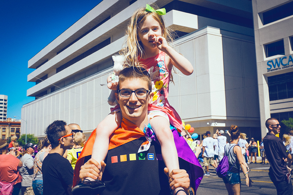 Yesterday we all attended the Utah Pride Parade in perfect weather (sunscreen thoroughly applied). The girls loved the candy and necklaces and rainbow-colored balloons, the signs and costumes, and the company of Dane, Tyrant and Julio who have all become a part of our family. I feel so lucky for their friendship, but even luckier for the love and example they have given to my girls. A day of gratitude.