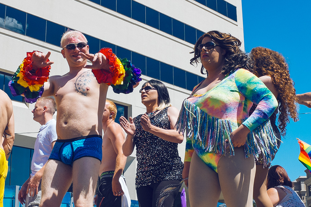 Rainbow floaties Heather B. Armstrong | June 10, 2014 The explanation here to the girls was that some people like to wear their very crafty bathing suits in the parade. Rainbow floaties! Or, you know, pants can be cumbersome. Leave them at home!